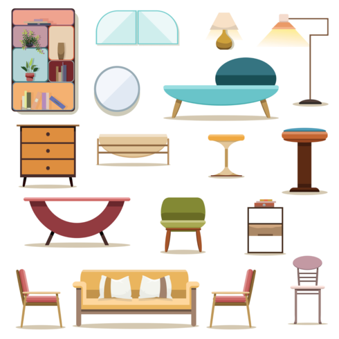 Colorful Furniture Items Set Furniture Collection In Color Royalty Free Cliparts Vectors And Stock Illustration Image 58516175
