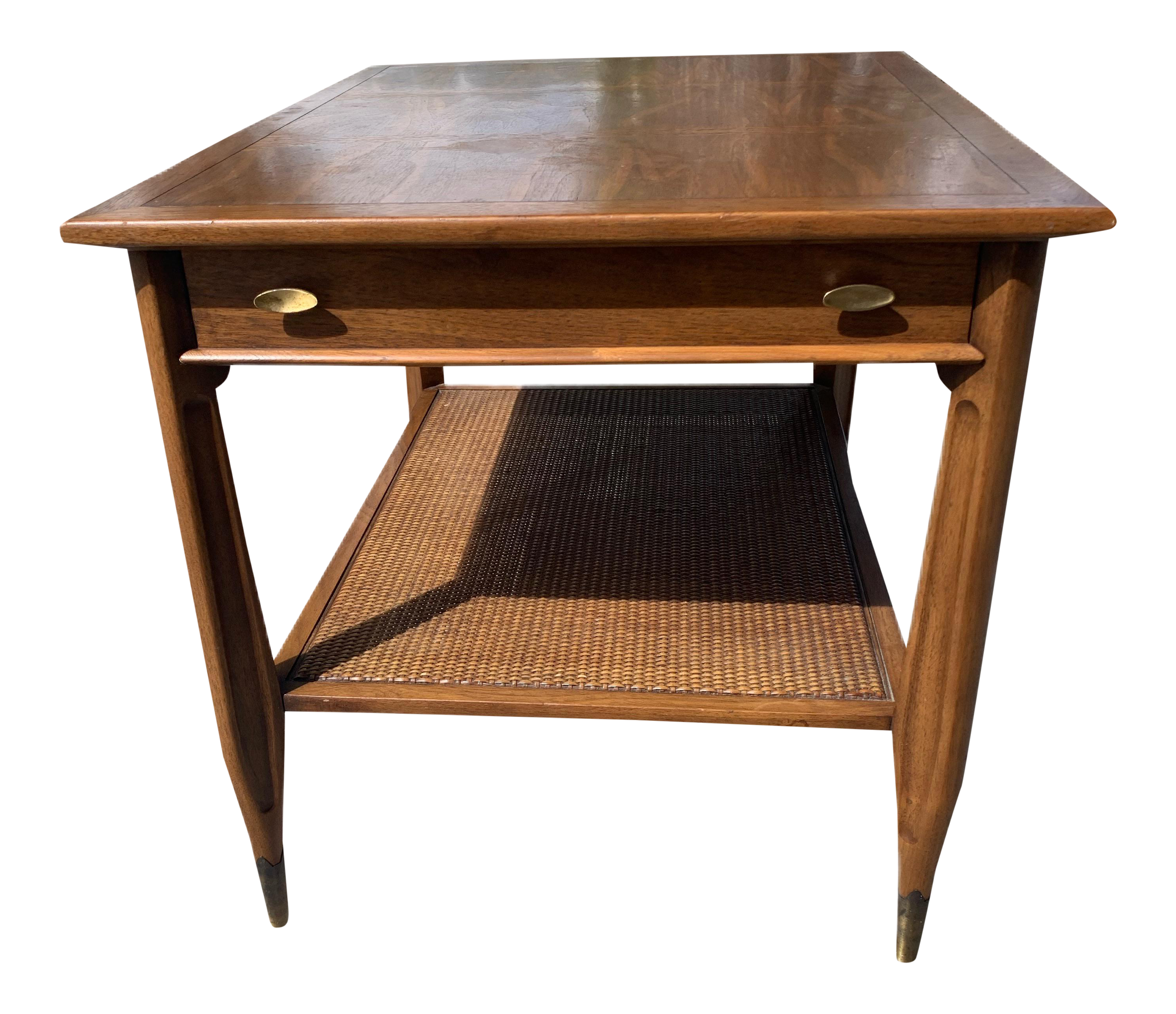 Mid Century Modern End Table With Cane Shelf Chairish