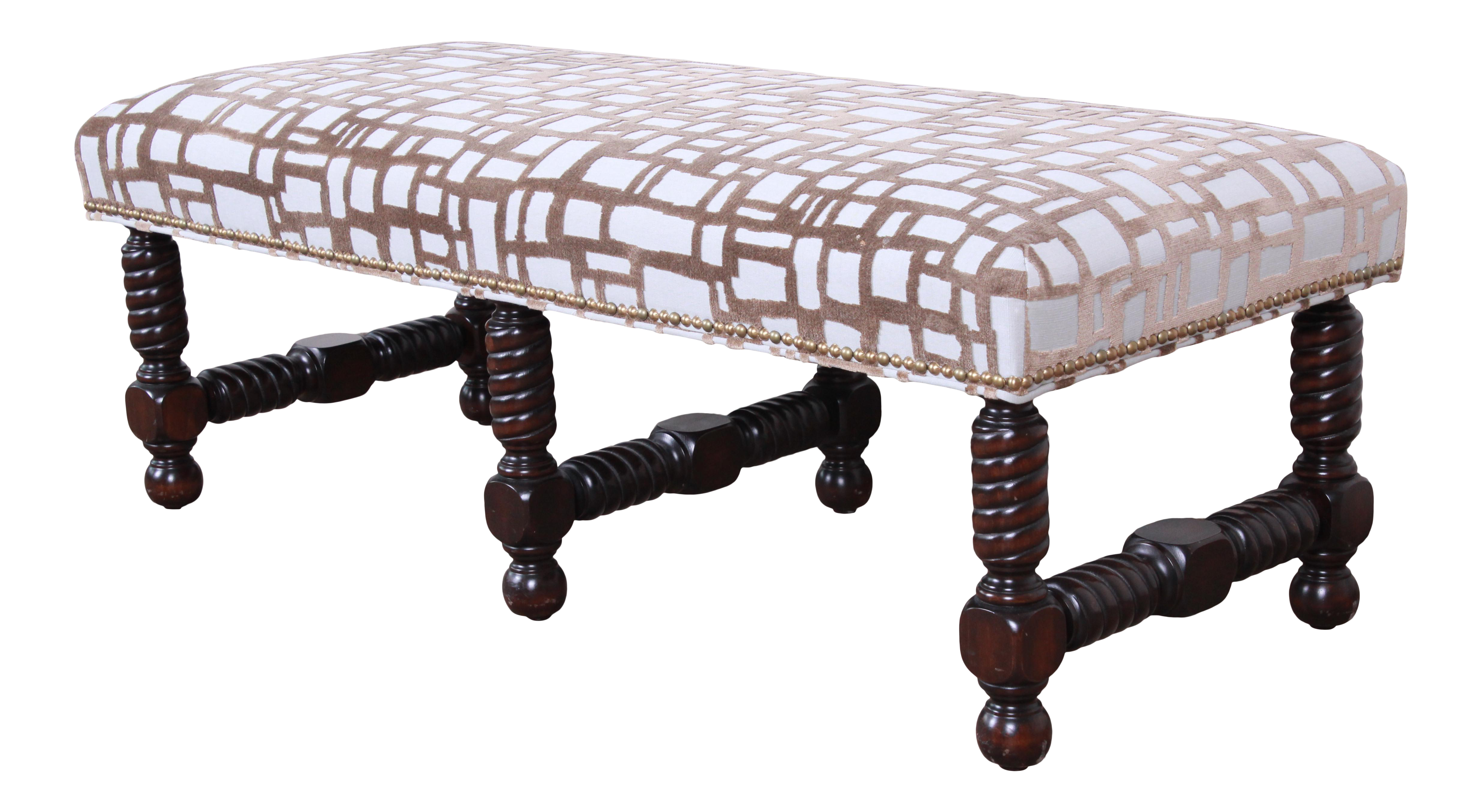 Contemporary Transitional Jacobean Revival Walnut Upholstered